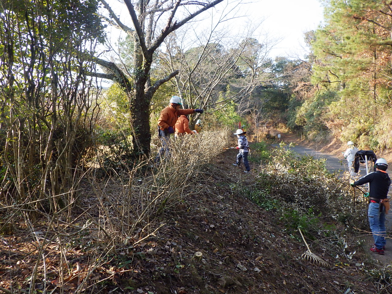 ボランティア活動として総勢12名で、雁回公園の遊具広場の周りの低木の剪定をしました。