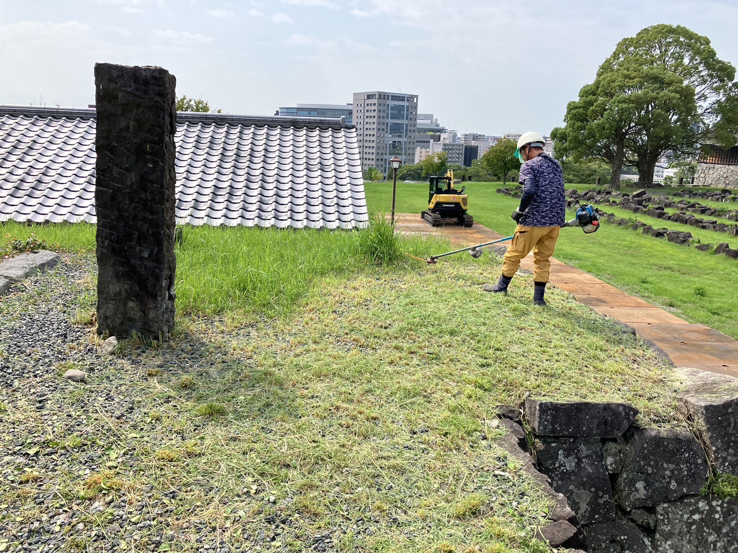 今回樹々緑化建設さんの応援として熊本城の石垣に生えてる雑木や雑草の除草を行いました。