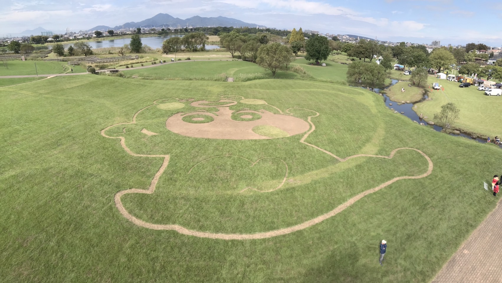 今年で12回目になるみなも祭りですが、今年はあの国民的アニメのクレヨンしんちゃんとコラボしており、いろいろな所をしんちゃんが歩いて回ったり、いつもと違う地上絵を見ることが出来ました。