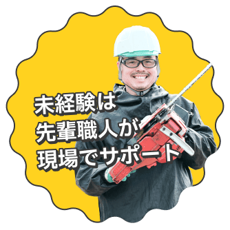 会社が全面サポート資格取得補助があるため、未経験でも安心です。経験者も新しい資格を取得することができます。未経験者は現場に出る際には、必ず先輩職人がサポート。マンツーマンで指導してもらえるため、きちんと仕事を覚えることができます。