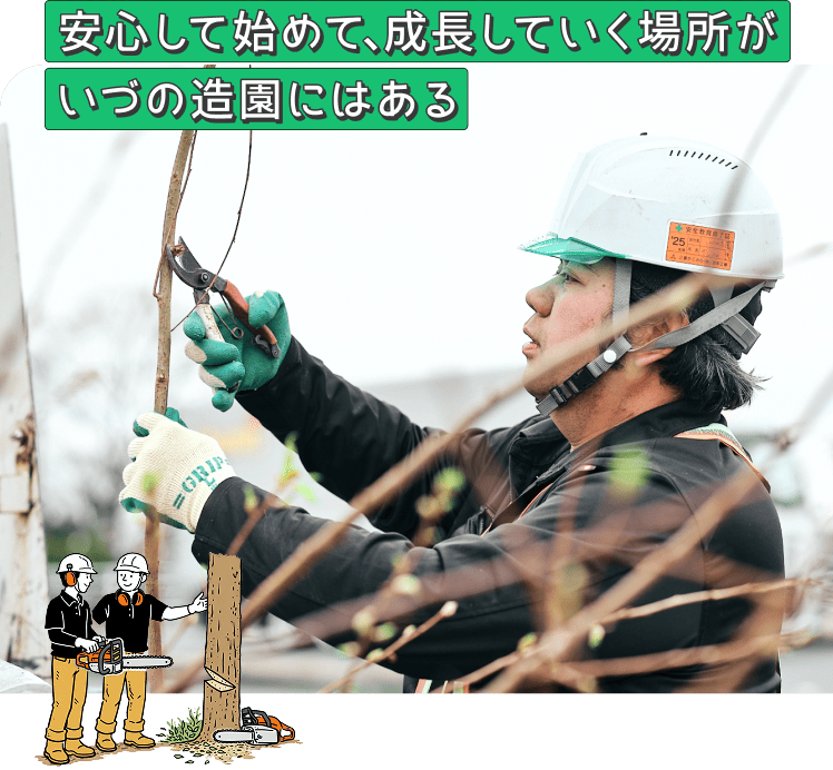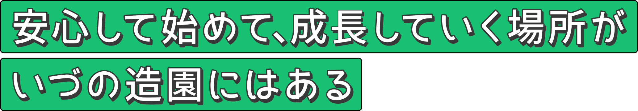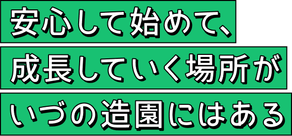 A3ほとんどの人に向いている、間口の広い仕事だと思います。実際にさまざまな経歴の人が活躍しており、未経験からでも始めやすい仕事です。自然や緑が好きな方はもちろん、現場で少しずつ学びながら成長していけます。