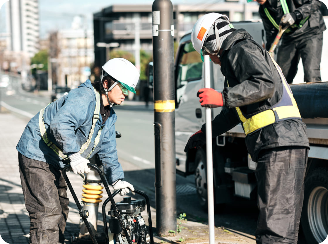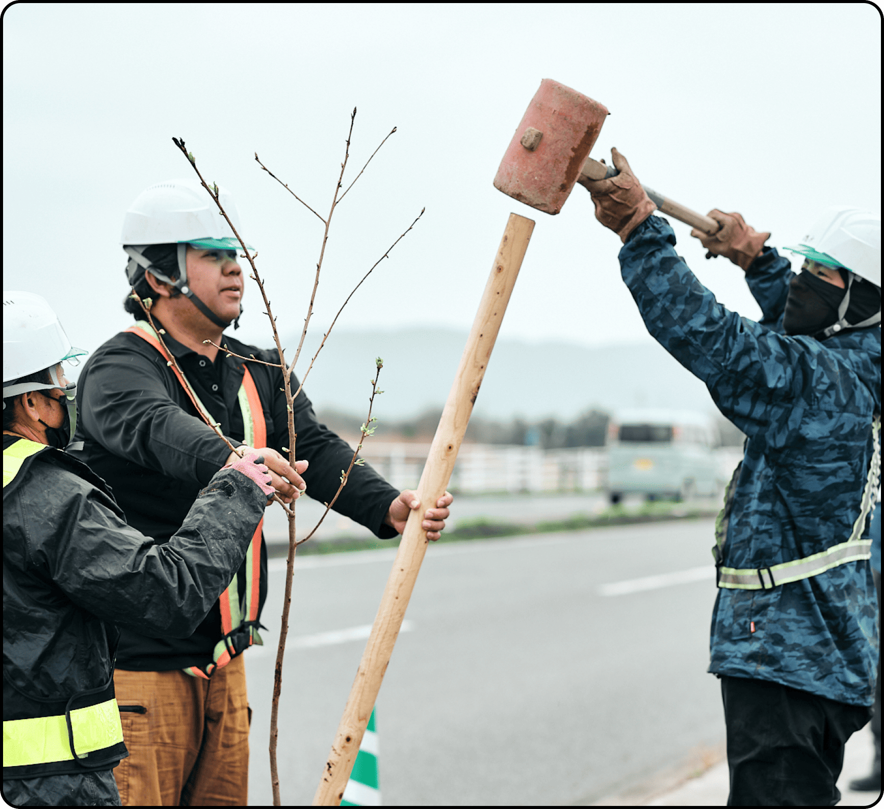 高い技術と組織力確かな技術力と組織力を強みに、行政からも高い評価をいただきながら、公園整備や街づくりなど地域に欠かせない仕事を担っています。長く働くほど、現場で通用する専門性と技術が着実に身につきます。