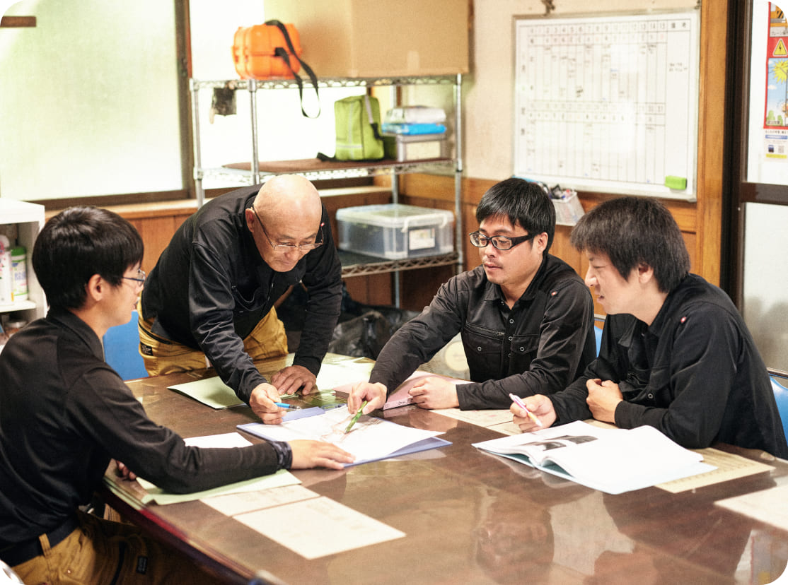 A1大丈夫です。仕事は3〜5人のチームで進めることが多く、未経験の方も先輩と一緒に現場に入りながら覚えていけます。実際の作業を見たり、教わったりしながら、少しずつ知識と技術を身につけられる環境です。