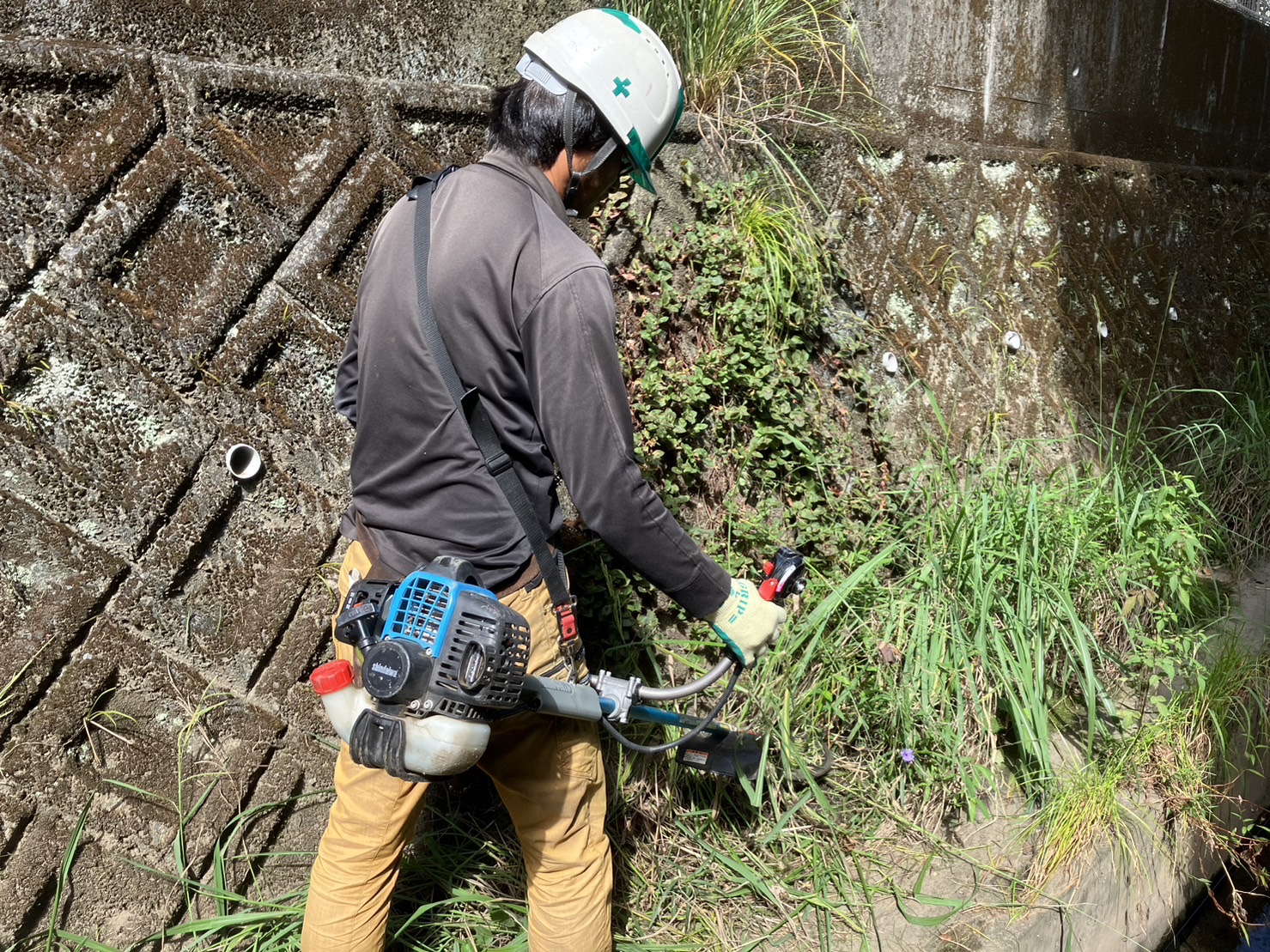 まずは、低いとこに生えてる草を刈払機で、除草していきます。