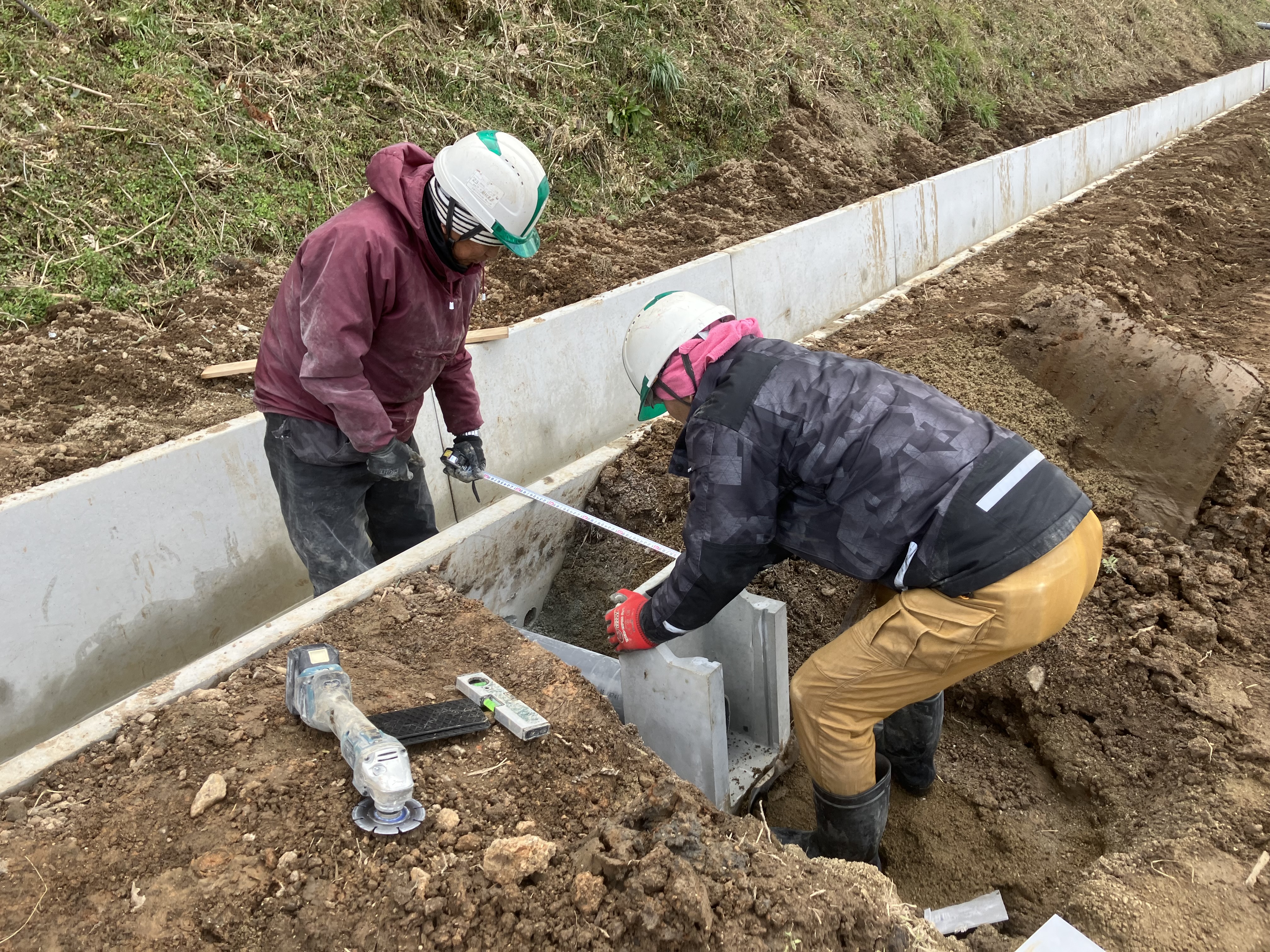 排水トラフの設置が終わったら最後の仕上げに取り掛かります。