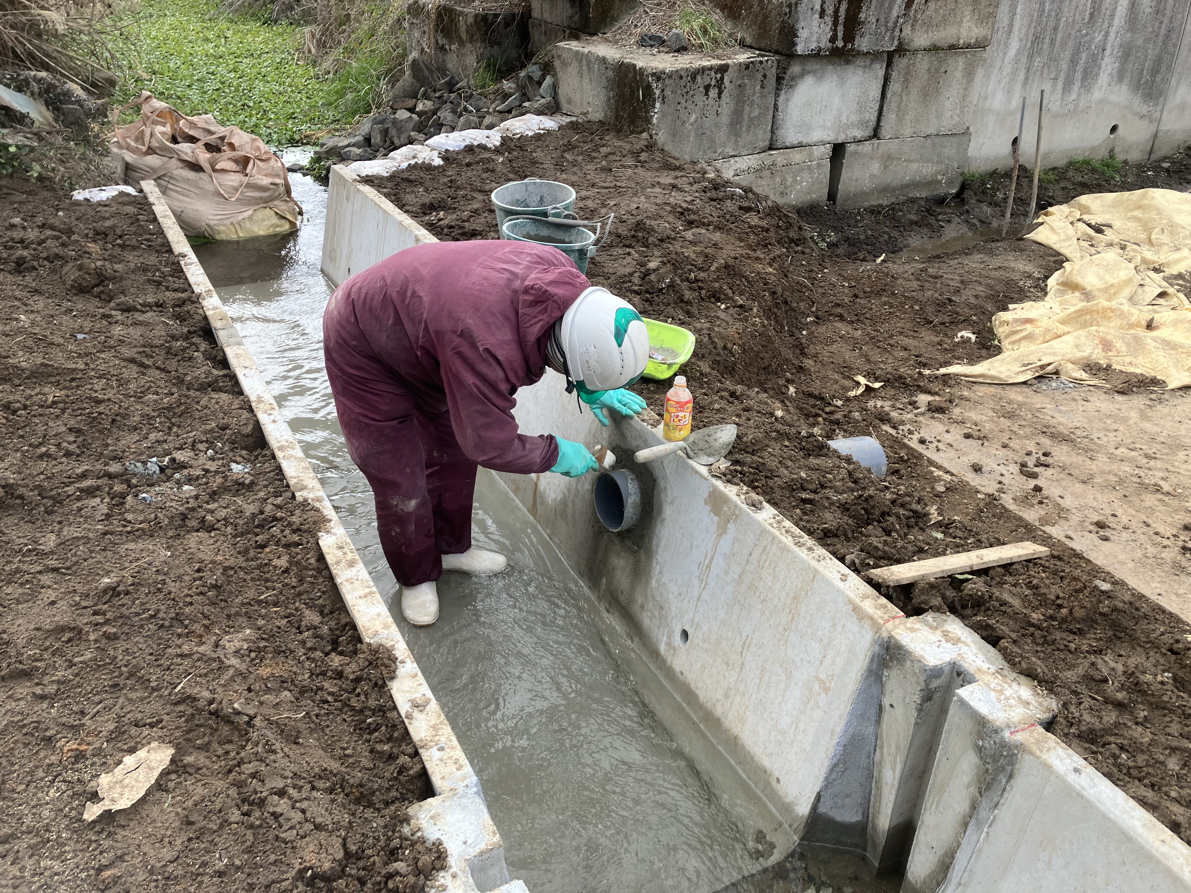 最後に穴をモルタルで塞いだら排水桝の設置は完了です。