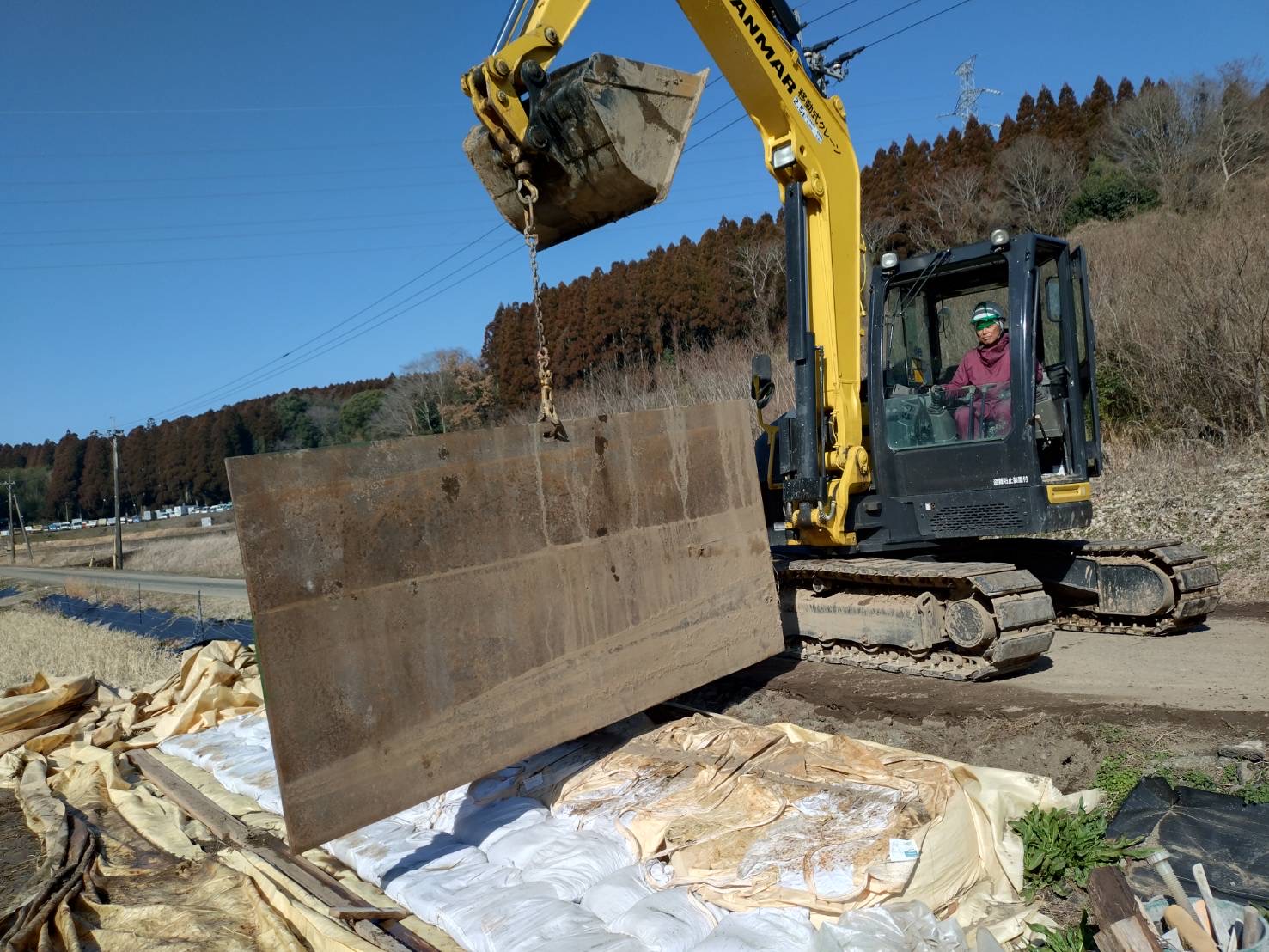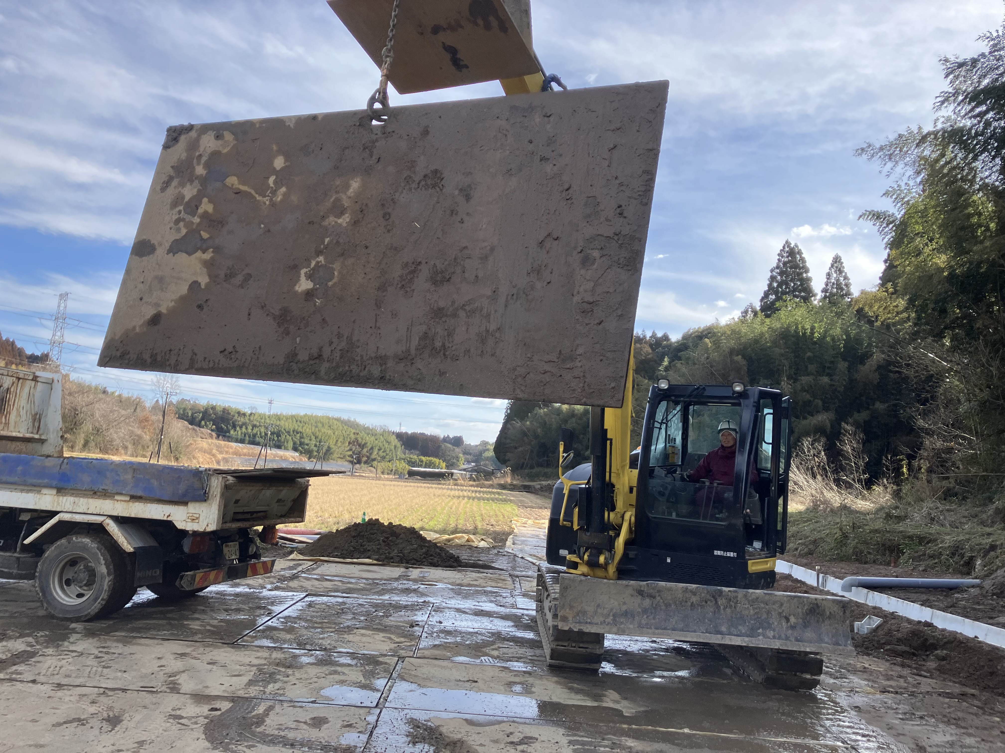 最後に敷鉄板を敷いていた箇所をトラクターで耕して、あぜ道を直したら完了です。