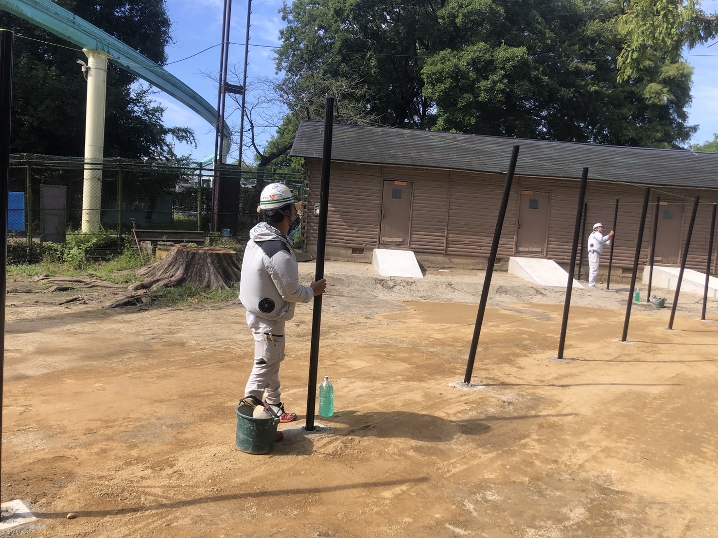 スロープの作業が終わったらフェンスの設置作業に入ります。
