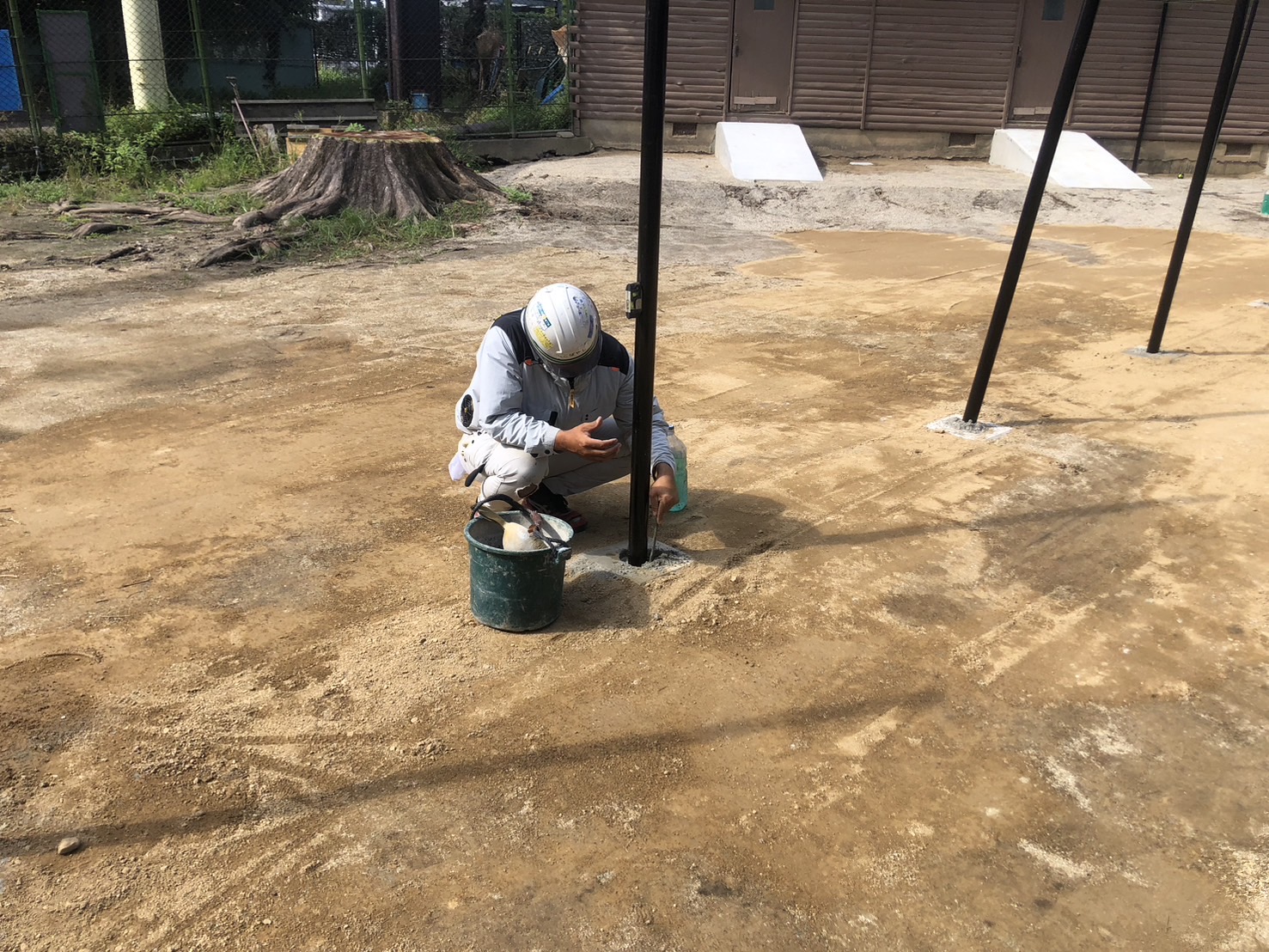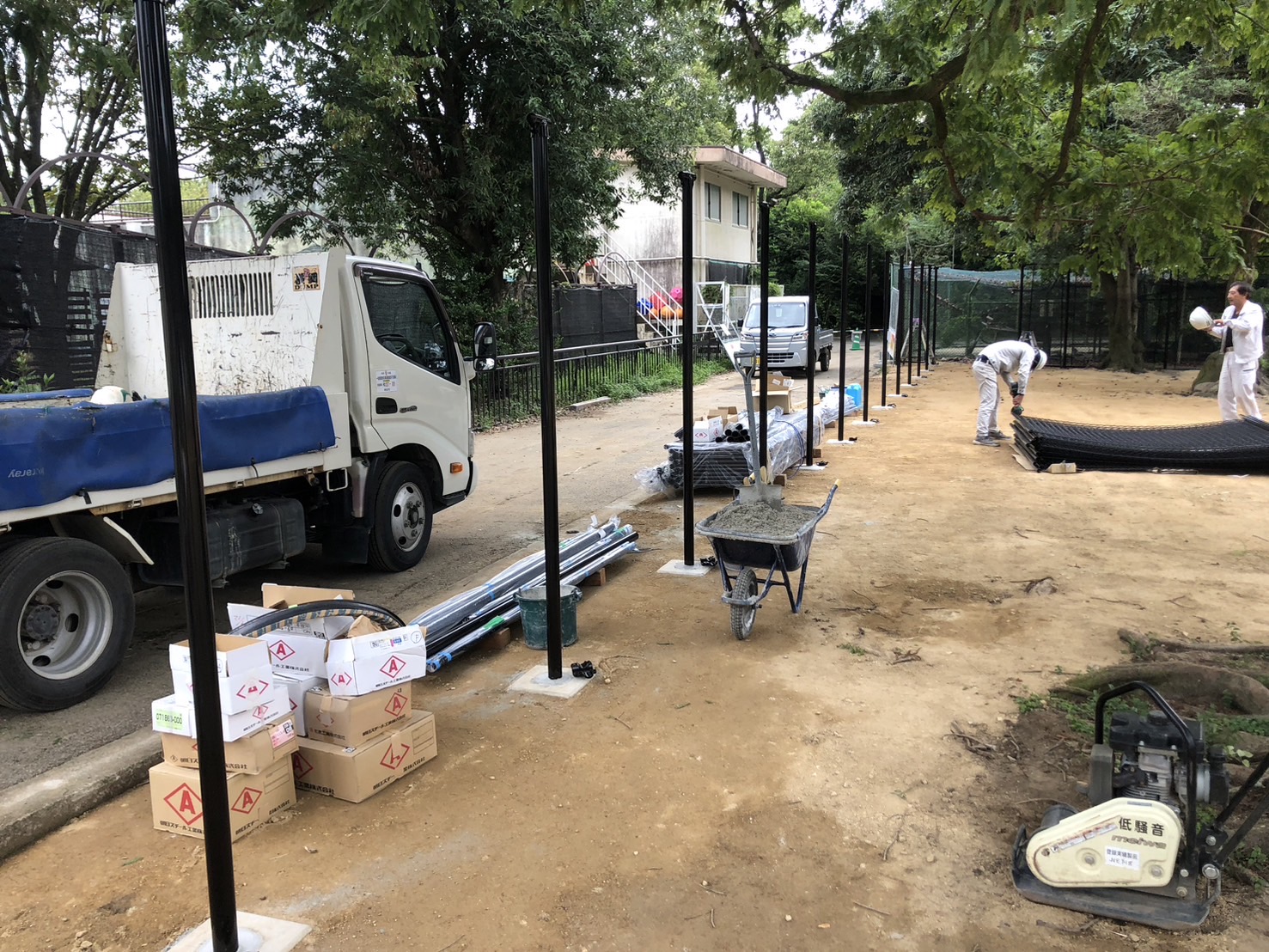 スロープの作業が終わったらフェンスの設置作業に入ります。