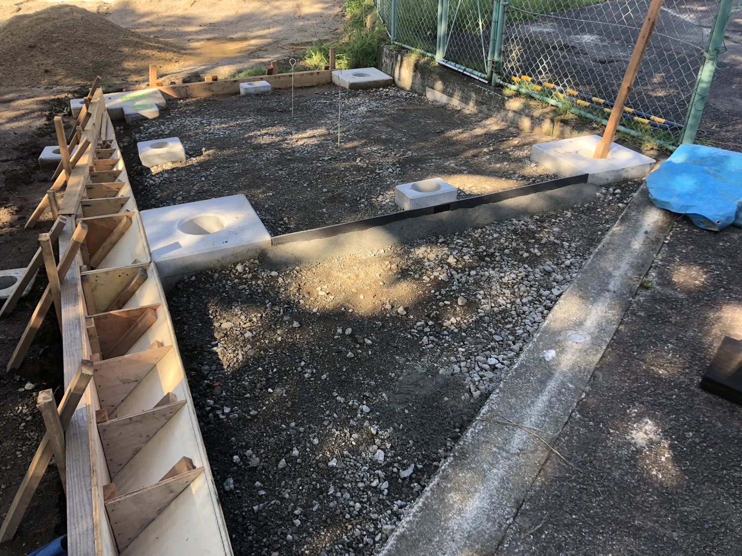 まずはフェンスの支柱の支えになる基礎ブロックを設置して行きます。