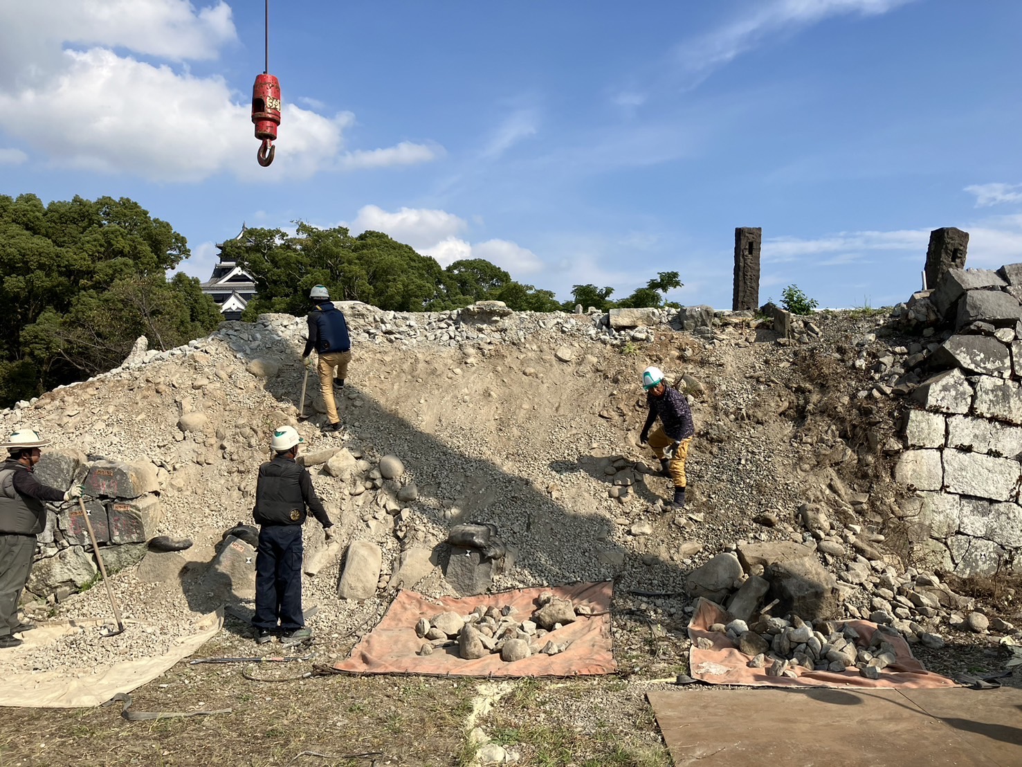 石垣は文化遺産にも登録されてる熊本城の大事な一部です、それを構成する石材も慶長時代からある大変貴重なものなので、回収した石材は保管された後、石垣の復旧の際に再利用されます。