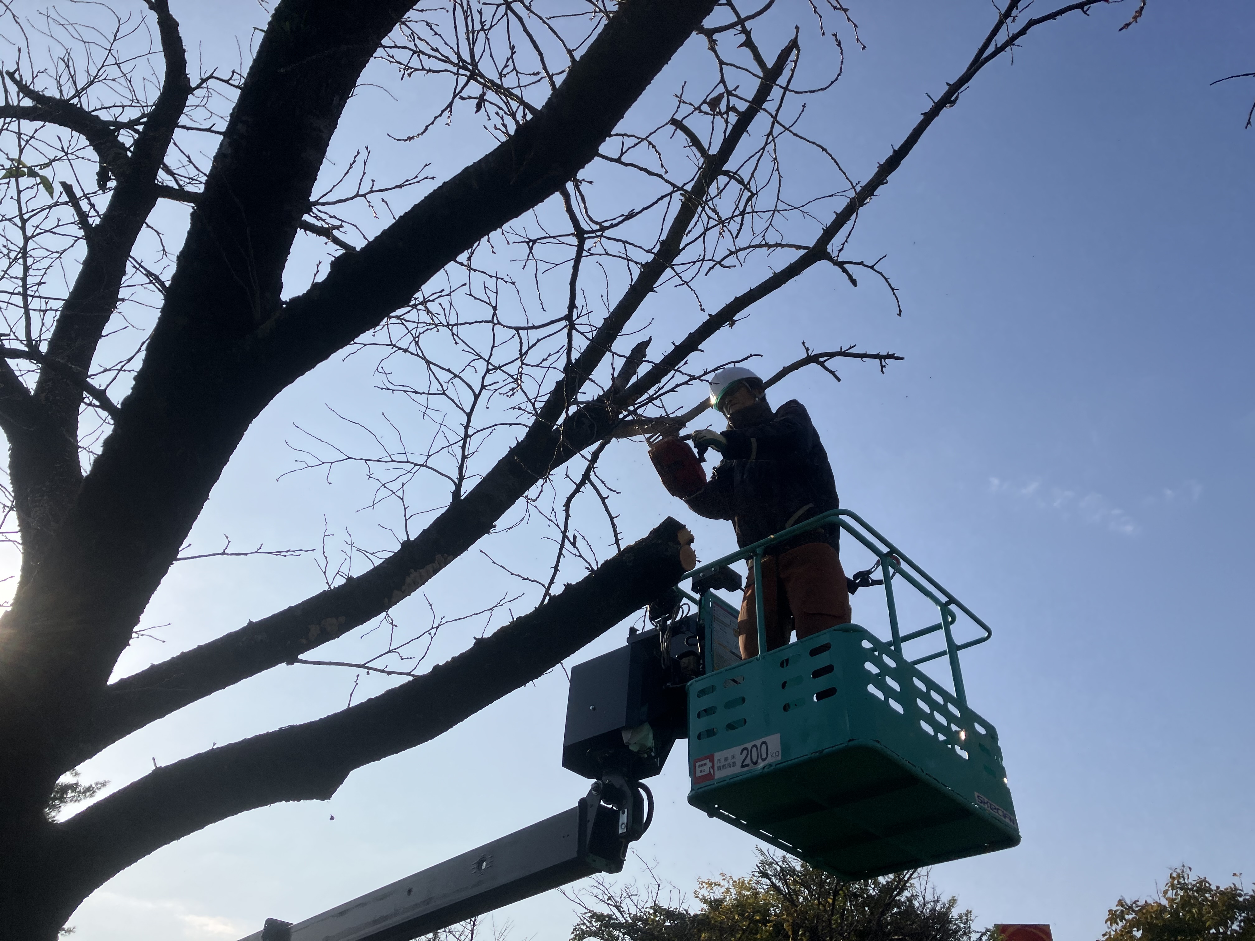 今回桜が植えてあった場所に新しく植栽するので、根株まで綺麗に抜根していきます。