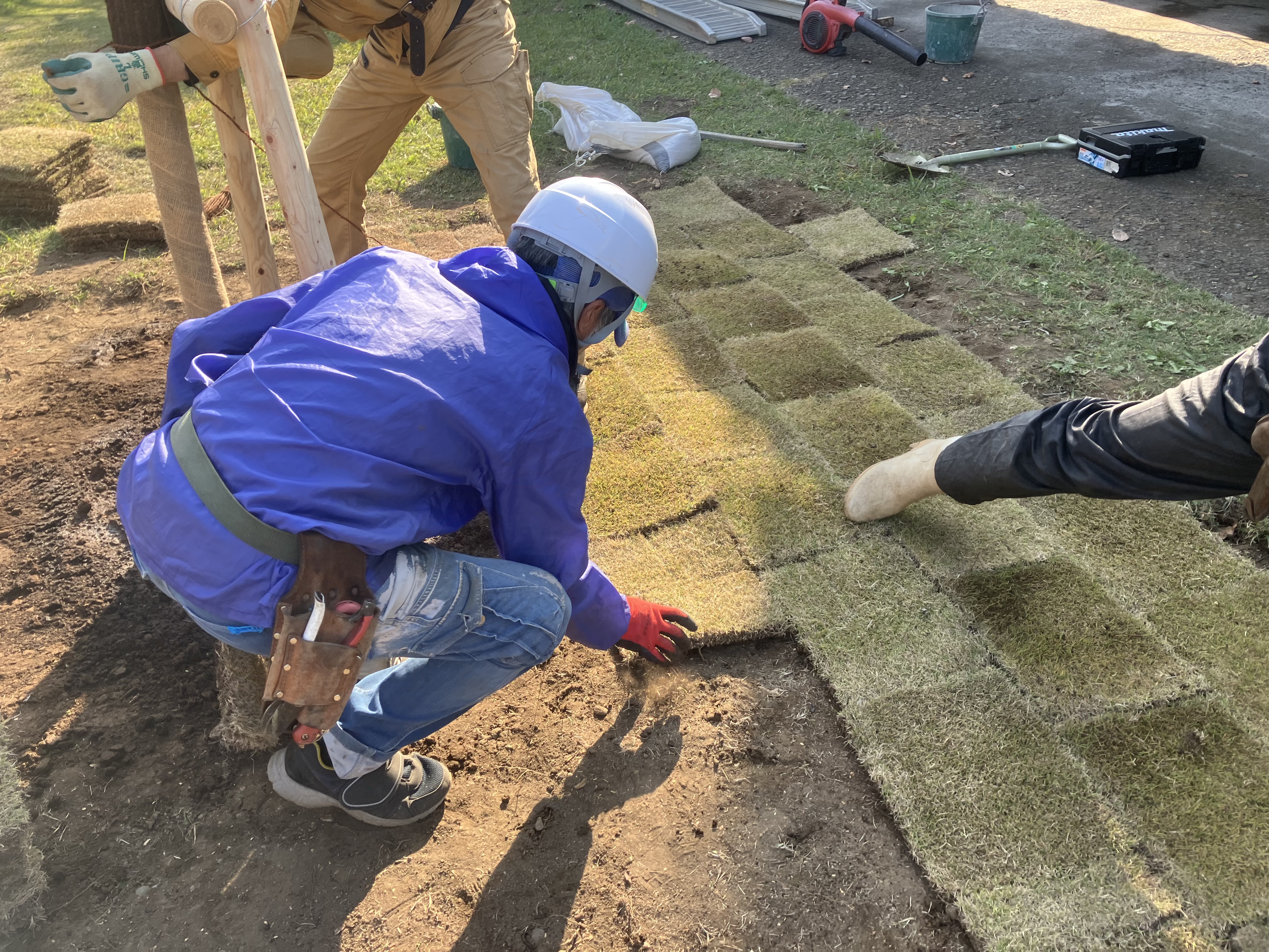 次に伐根の時に剥いでしまった芝を新しく植えていきます。
