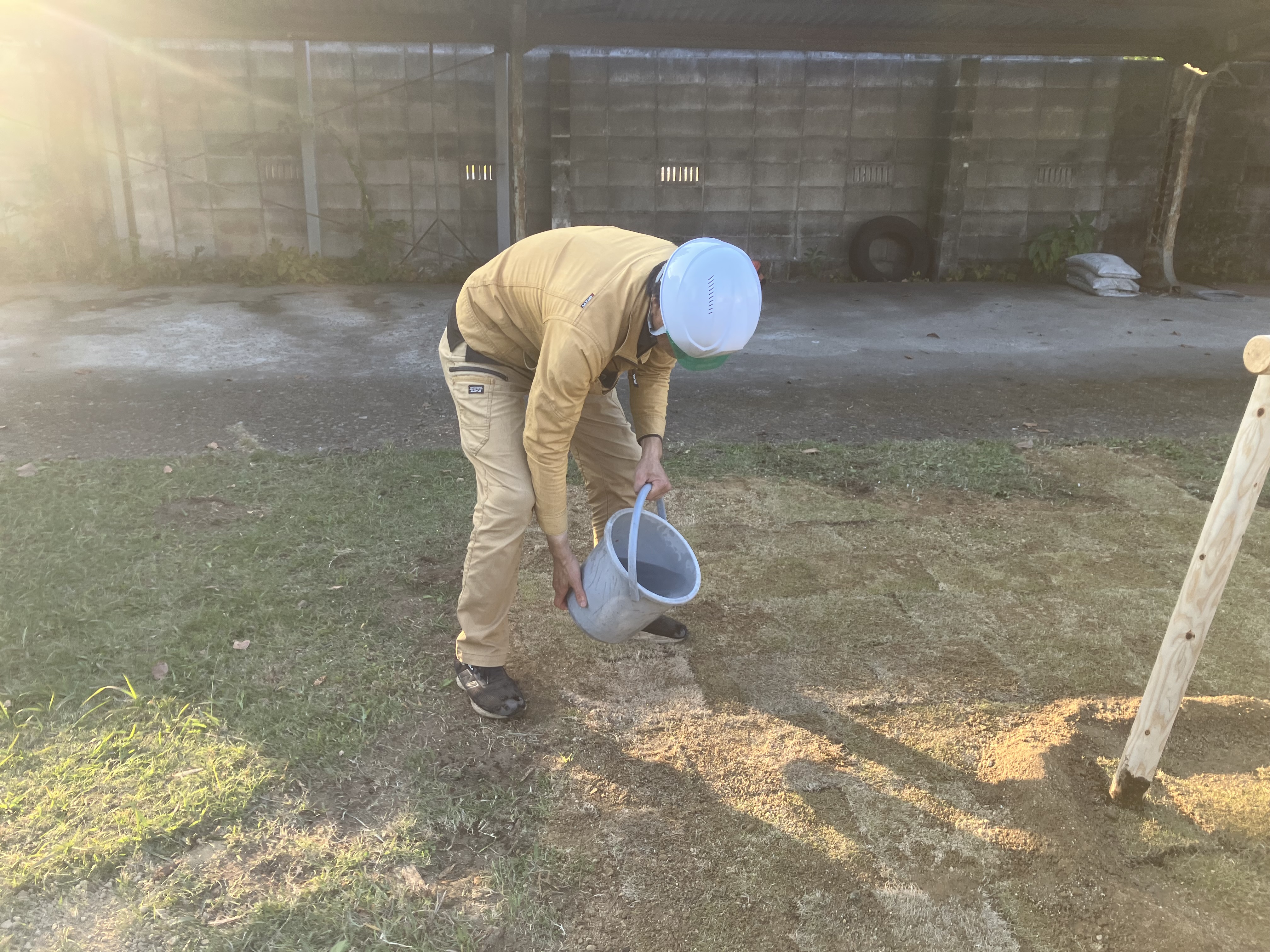こうすることで芝生の水はけや通気性の改善や芝を乾燥から守ってくれます。